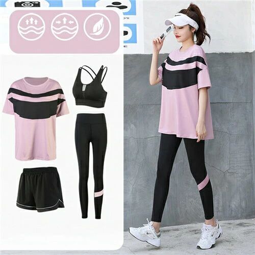ランニングウェア レディース 4点セット 春夏 セット ウェア おしゃれ 可愛い かわいい トレーニングウェア ジムウェア ジム ヨガウェア スポーツウエア 女性 秋冬 トップス 夏 スポーツブラ 半袖Tシャツ レギンス ショートパンツ 吸汗速乾 ヨガウェア セット ブルー 黒