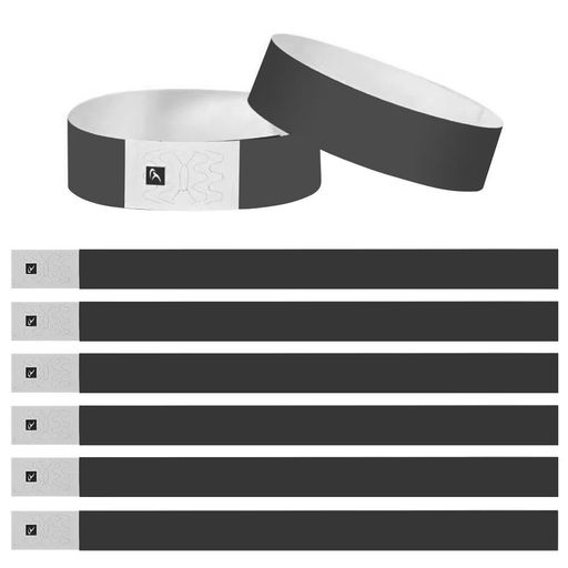 【合成紙リストバンド商品サイズ・仕様について】約1.9CMX25CM豊富なカラー:オレンジ、パープル、ピンク、ブラック、ブルー、ホワイト、緑、赤、黄、グレー枚数選択可:100枚・200枚・500枚・1000枚 【耐久性抜群の高品質】破れにくく耐水性にも優れた丈夫な合成紙素材を採用しているため、雨風に強くて印刷がはげないうえに、濡れても破れにくい丈夫なリストバンドです。スポーツイベントの雨天時や海や川、プールなどでも使用可能です。雨や汗に濡れても切れたりしません。 【目立つ色】視認性、デザイン性ともにバランスの良い力強いリストバンドです。さまざまなイベントで使いやすく、手首に装着すると意外に目立つ。 【装着方法もシンプルでカンタン】リストバンドの端に粘着テープが付いていますので、ワンタッチで装着可能です。見た目は紙のようですが引っ張っても簡単には外れない抜群の強度と耐久性能を保持しています。一度外すと再装着不可能ですので不正入場などの防止にも役立ちます。 【使い捨てリストバンドのご利用シーン】再入場の際の管理にとても便利な商品です。