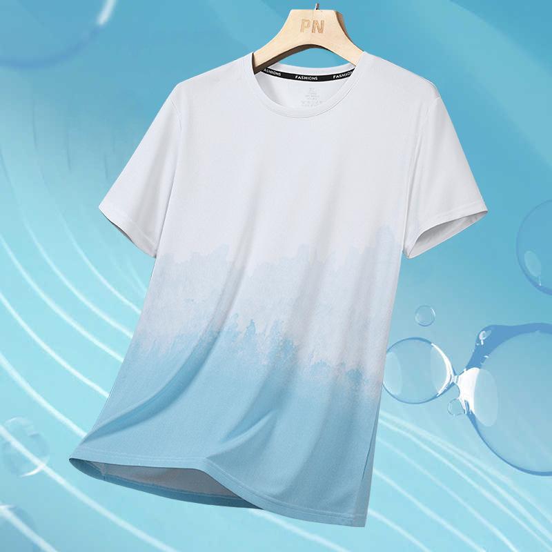 Tシャツ メンズ 半袖 長袖 グラデーション クルーネック ポリエステル 吸湿速乾 通気 涼感 薄手 カジュアル スポーティー 普段使い 春夏 グレー 浅葱色 白 杏色