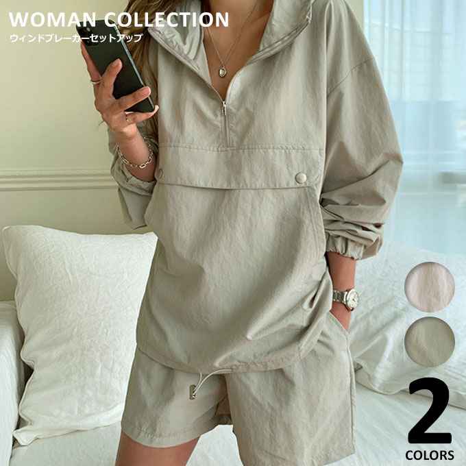 おしゃれ レディース 春 韓国ファッション ウィンドブレーカー セットアップ SS アノラックパーカー ホワイト ショートパンツ シンプル フリーサイズ グリーン カジュアル 夏