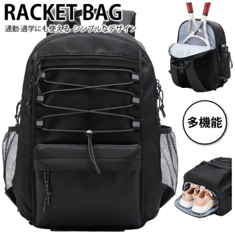 【送料無料】テニスバッグ 2本用 テニスラケットバッグ テニスラケットリュック バドミントンラケットバッグ 靴収納付き バドミントンバッグ リュック テニスバックパック 大容量 撥水 学生用 大人用 子供用 通学/ジムに最適 持ち運び簡単
