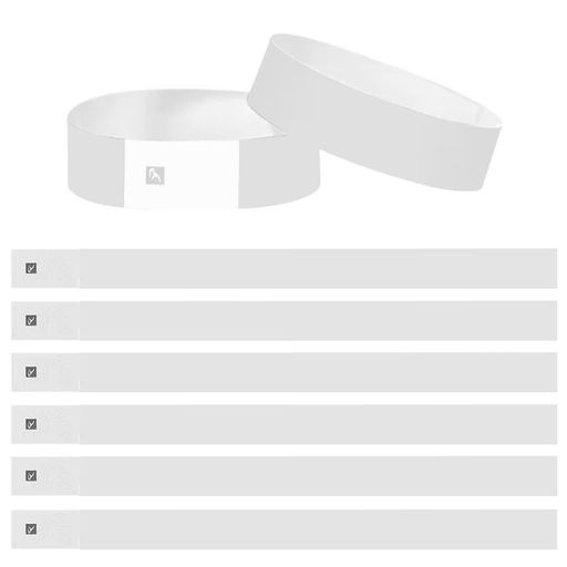 【合成紙リストバンド商品サイズ・仕様について】約1.9CMX25CM豊富なカラー:オレンジ、パープル、ピンク、ブラック、ブルー、ホワイト、緑、赤、黄、グレー枚数選択可:100枚・200枚・500枚・1000枚 【耐久性抜群の高品質】破れにくく耐水性にも優れた丈夫な合成紙素材を採用しているため、雨風に強くて印刷がはげないうえに、濡れても破れにくい丈夫なリストバンドです。スポーツイベントの雨天時や海や川、プールなどでも使用可能です。雨や汗に濡れても切れたりしません。 【目立つ色】視認性、デザイン性ともにバランスの良い力強いリストバンドです。さまざまなイベントで使いやすく、手首に装着すると意外に目立つ。 【装着方法もシンプルでカンタン】リストバンドの端に粘着テープが付いていますので、ワンタッチで装着可能です。見た目は紙のようですが引っ張っても簡単には外れない抜群の強度と耐久性能を保持しています。一度外すと再装着不可能ですので不正入場などの防止にも役立ちます。 【使い捨てリストバンドのご利用シーン】再入場の際の管理にとても便利な商品です。