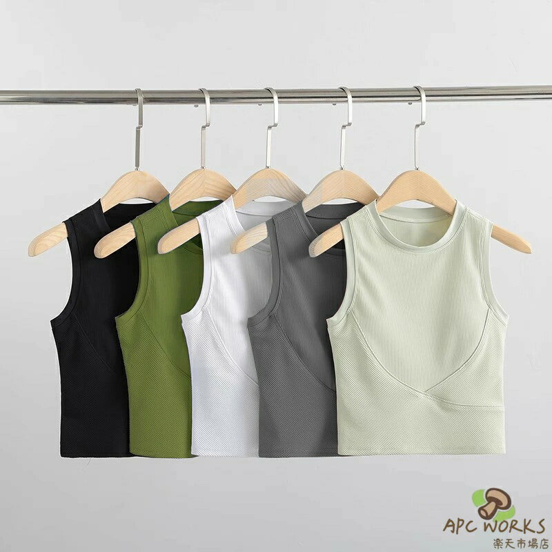 送料無料 ヨガウェア スポーツウェア ベスト トップス レディース フィットネスウェア 袖なし タイト ショート タンクトップ 胸パッド付き ランニング ノースリーブ フィットネス トップス 夏 ストレッチ ピラティス おしゃれ